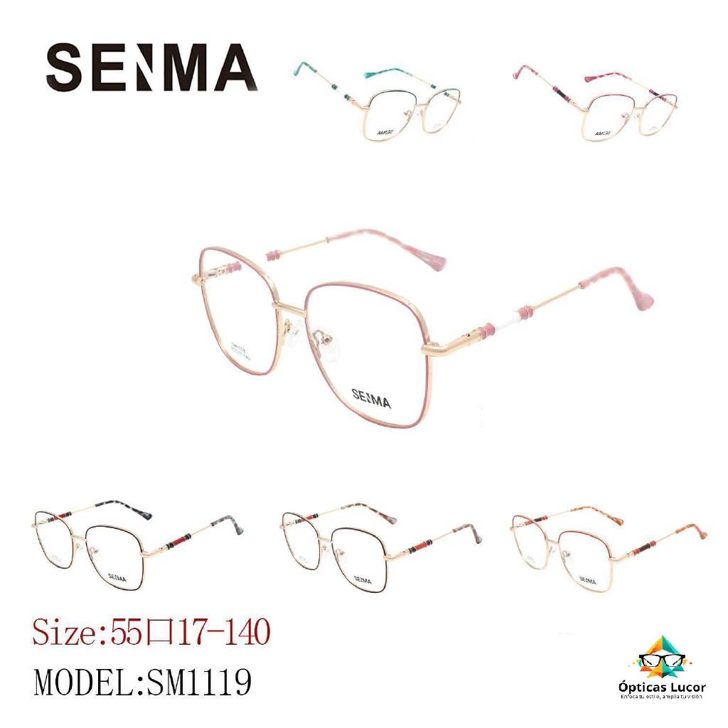 El modelo SM1119 combina un diseño minimalista con detalles modernos. Su montura metálica lo hace liviano pero fuerte, perfecto para el día a día. Con opciones en negro, dorado, plateado, rosado y rojo, es una pieza versátil y elegante.